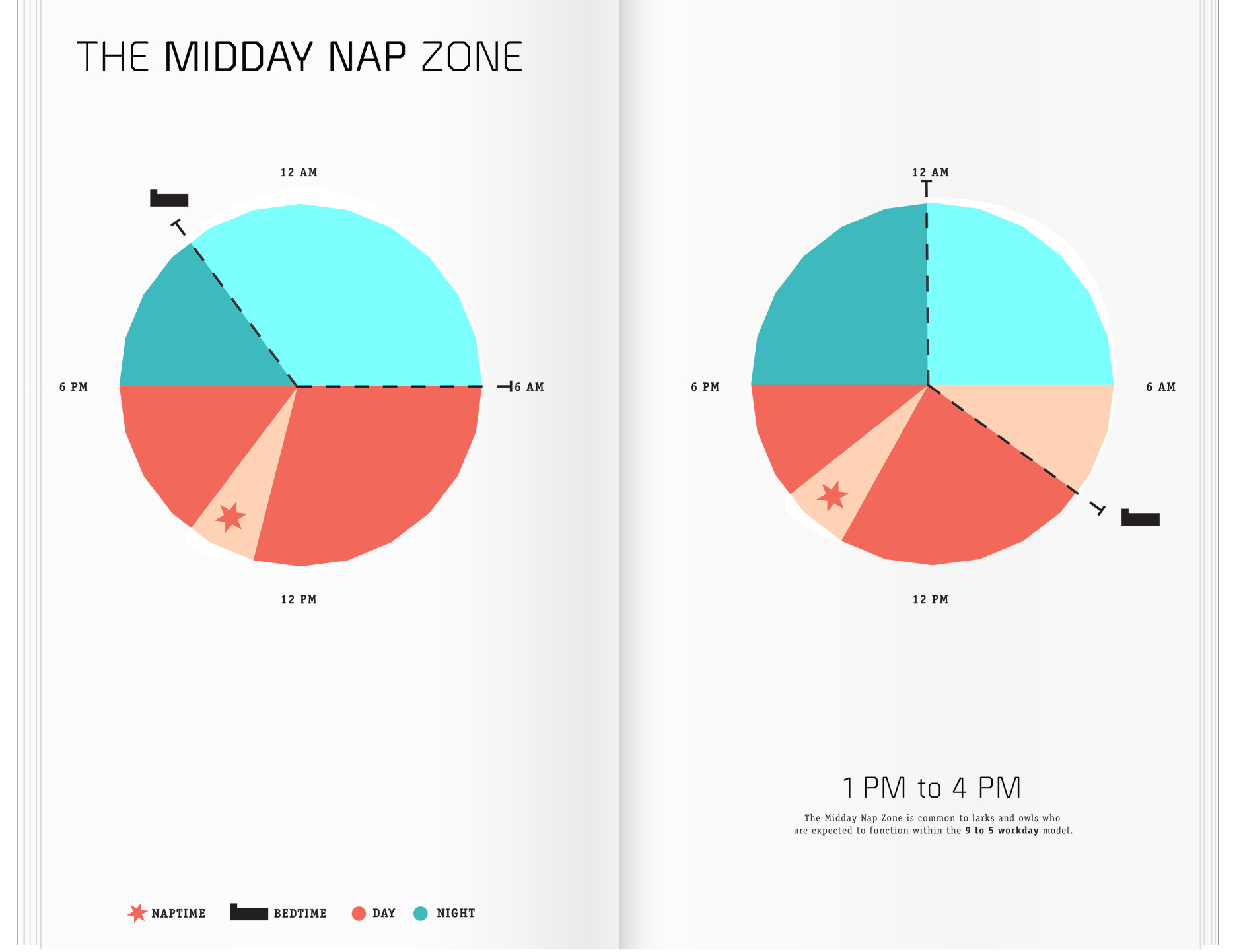 This thesis stemmed from my curiosity of the 24/7 lifestyle in NYC, and then evolved into an exploration of how the normative ideas of sleep throughout history have shaped — and continue to shape — urban America in terms of labor, health practices, and personal priorities. The necessity for sleep has very little to do with laziness or incompetence, and everything to do with physiology and biology. The aim is to build a sound argument for proving how beneficial it is to strategically add long and short sleep into one’s daily schedule while enjoying freedom from worrying about being perceived by others as a slacker.